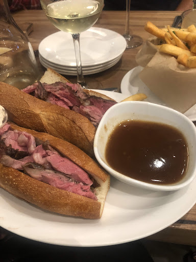 The good: They cooked a nearly perfect Steak Frites... it was done medium, served hot, with plenty of juicy pink in the middle, and didn't make me sick. It was just a little over-salted for my taste, but I eat less salt than most. Their haricots verts / green beans are very good and very well-seasoned. The service is good, and it's pretty easy to pay and get your food (although you have to bring cash to tip). They also responsibly source their meat and dairy, and its very convenient if you already shop there.