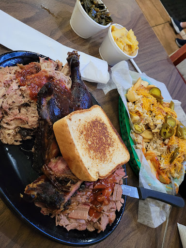 I can give three stars. Food was good, service/packaging of food was not. We stopped in on Saturday late afternoon for take out. It was quite busy and waited a bit to order which was fine. What was not fine was the lady at checkout. We placed an order for baby back ribs...they were out. That's fine so we ordered a lb of the pulled pork. We also ordered 1 quart of potato salad which we had to repeat multiple times as it seemed she wasn't quite getting it. She went to the back to find out if they had a quart and she came back and said she did. Then we ordered a pint of the BBQ beans. We stepped outside to wait. Waiting wasn't an issue, there were a lot of people waiting. We finally got our order and I checked the bag. We had a quart (not a pint) of baked beans but no potato salad. We inquired and she looked at the receipt and said it wasn't on our ticket even though we ordered it. After a bit of back and forth we took what was given and left. We stopped at the Dollar store and I ran in to get some hamburger buns. I came out and picked up the bag that I had placed on my passenger side seat and it seemed that inside the bag was all wet. Unfortunately the lady had put the pulled pork on the bottom, on top of that the small container of sauce (which was in a paper bag) and then added the quart of beans on top of the small container of sauce. Needless to say this arrangement caused the beans to practically fall over because of the instability of the packed contents. The beans caused the sauce lid to come off spilling the sauce into the plastic bag, the paper bag was saturated. We tried to lift the baked beans off of the sauce container and the top to that was broken and we almost were wearing the beans at this juncture trying to struggle with all of it while still sitting in our car at the dollar store. Fortunately we had a reusable Publix bag in the car so we moved the beans into that bag. I typically don't post bad reviews as I try to always encourage every business but at some point after the fact I was concerned that the lady at the takeout window was overwhelmed. Common sense tells you that when packing a takeout order you put the big things on the bottom and layer with the small containers on top. Or at least put items in multiple bags if there's a concern of anything tipping over. This might seem like a a small reason to complain but I'm only bringing it up to make you aware that the take out counter might need a...