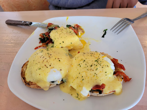 Read moreJust returned home from lunch at Brunchies Breakfast and Lunch. I've not been there before but Guy has and he said I would like it. We planned to go a few Sundays ago after church. We drove up, saw the line and went somewhere else. We went today. No waiting. Brunchies is a nice sized breakfast and lunch only restraunt. It's clean and they offer both tables and booths. We were welcomed and seated immediately. Guy was right, I was impressed. I knew what I wanted before we even got there. As I looked at the menu I saw at least three salads, 4 breakfast items and a few sandwiches I wanted to order to take home. I didn't. I pretty much order Eggs Benedict at breakfast places because I like them and they're hard to find. Brunchies has them listed as Eggs Bennie. I requested that the English muffins be well toasted and they were. I received 2 perfectly poached eggs with Canadian bacon on english muffins that were toasted the way I requested. The hollandaise sauce was rich and creamy and didn't separate. All together very good. The meal came with home fries, tomatoes or grits. I choose the grits and asked if I could have cheese grits instead. I was told I could. I should have chosen the home fries. The grits were hot and had real cheese melted on top, but no flavor. I only had a few bites. Guy had a skillet breakfast that came in an iron skillet. Hence the name skillet breakfast. It had real beef, (not that Dinty Moore stuff was his comment) home fries and various veggies. The server suggested Brunchies home made hot sauce to sprinkle on the meal and Guy said he'd try it. Guy said it was better than the watery stuff most restraunts have. It had body but wasn't too hot. He compared it to hot sauce he got in the Caribbean. High praise. I look forward to going...