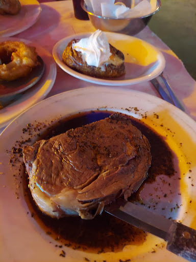 The prime rib was fatty and not that good melt in your mouth fat. The aus jus was amazing but just a small amount on top. The meat itself was tasty. The Ceasar salad was good and a large portion, but the sweet potato was under-cooked and cold. My husbands burger was a double decker and he ended up taking one patty off and only eating about 3/4ths of it. The fries weren't great. My daughter who loves fries didn't even eat them. Her mini hotdogs were amazing lol.