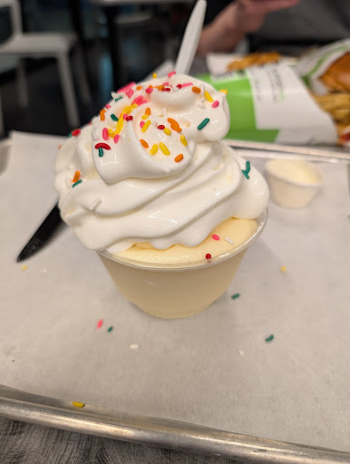 The frozen custard was icier than expected rather than creamy. The machines might be poorly maintained or incorrectly set since butter crystals were present and made it very unpleasant to eat. Definitely lower quality compared to Shake Shack or even McDonald's soft serve. Not worth it even if it was $2.