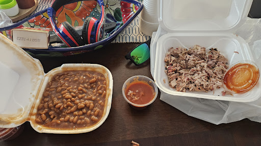 Read moreDELICIOUS! While it’s not the best BBQ I’ve had, I WILL DEFINITELY RETURN! The food wasn’t showy or elaborate (just like the truck itself)- It looked and TASTED LIKE HOME-COOKING FROM A PRO. The combos seemed like the best deal; often two kinds of BBQ accompanied with two sides, sauce, and white Bread. THE RIB MEAT SLID OFF THE BONE while the SAUSAGE HAD A NICE, CRISP SKIN with soft and juicy insides. Normally Chicken is… well… just normal to me however it was my favorite of the Meats. It really reflected the good parts of the smoky flavor combined with excellent seasoning. The truck sits at the corner of a church’s property. Normally people grab-and-go but there are A FEW PICNIC TABLES NEARBY TO DINE there. One man did everything from order taking to manning the grill-...