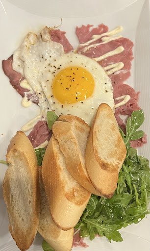 Read moreDinner!!! So I reviewed brunch and have now been back for lunch several times but finally headed here for dinner. They have a descent selection of draft (4), bottled beer and wine. We ordered the beef carpaccio to start. This is one of my favorite dishes and I guess I love it even more now! Holy smokes the beef was tender, the sauce amazing and the dressed greens.. add the egg on the toasted points and there is a serious party happening in your mouth! We moved onto the entrees.. Scallops with Butternut Squash and the Baked Market fish. The fish was Cobia and it was pan seared and put on top of a daily risotto (mushroom) and had a sun dried tomato pesto on top. This fish was cooked nicely and the risotto was delicious. It was too much pesto on top.. a bit overpowering. There was also a strong fish finish.. not that it was bad just off putting. But the fish was enjoyed! Now the scallops.. thus might be one of my favorite dishes. Such a nice flavor profile with the butternut squash sweetness matched with the prosciutto saltiness and balanced with the puréed pistachio pesto and onion marmalade. Scallops were perfectly cooked and not a bit of grit.. great quality. True compliment to the chef that prepared it! Dessert! Brought a piece of the lemon berry cake home.. Also excellent, fresh and light! Only complaint was we were a little out off by the football game and other entertainment on the two big screen tvs they had overhead.. we would have preferred a more romantic feel.. lights were bright. The ambiance is not what we prefer but the...
