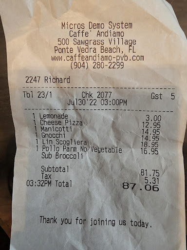 Read moreJust wanted to post about a very disturbing experience my mom and I had at caffe andiamo today which ended with the owner saying to his (father?) that “they’re no one” about my mother and I. We went in for lunch at 11:10 so it empty other than another customer and the owner and an older man (I believe his dad) all sitting at the bar. While eating appetizers we heard the owner telling a staff member in the kitchen to clean something but in a very nasty and demanding tone. Then later on, one of the cooks was prepping our pizza and the owner went over and was completely rude and condescending to him and was saying “the f word” multiple times. All loudly and in front of us. My mom was extremely uncomfortable and asked to leave. We got our food boxed and the waitress, who was amazing, apologized profusely. Before we left I walked up and asked if he was the owner and he said yes. I said respectfully, “my mother and I just ate and the food and service was amazing. However, we are having to leave early as the rude way you speak to your employees has made us extremely uncomfortable. It’s not ok to talk to people like that”. He immediately became defensive and tried to say he was telling them how to do something. I said “I heard every word of what you said and I know you were trying to correct him but it’s not ok to speak to people that way”. The older man asked “what did he say that was rude?” In a very defensive way. I sajd “everything you said was condescending. We will not be back. Thank you and good bye”. I walked away but my mother started saying to them that the owner was throwing f bombs in front of a 64 year old customer and it wasn’t ok. The older male said “we’ve been here for 20 years without complaint.” And the owner said to him “don’t worry, they’re no one” (in regard to my mother and I).
