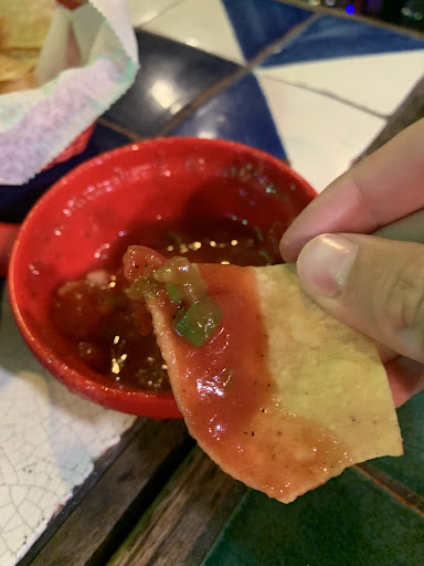 This was actually our second visit to Cantina Dos Amigos. (I like to try a place a few times before reviewing it.) Our server was Alex G., according to our receipt. He was very good. And knew exactly what we wanted, minus the drinks. Greeted us instantly. Dropped chips and salsa and took the drink order. I asked for a water and a piña colada and my husband requested a sweet tea. Alex brought us the sweet tea and water and assured my cocktail would be out shortly and said he would be right back. The colada showed up right after he walked away. He returned back with another table's drinks, checked on his other tables and stopped at us and asked if we were ready to order. Which we were, but like I said previously, he knew what we wanted. (I guess we're typical gringos, lol) The food arrived VERY quickly; and was ¡muy caliente! My eyes were definitely bigger than my stomach and needed a box about halfway through. My husband just about finished all of his. Alex brought our box, upon our inquiry. Asked if there was anything else we'd like. We said no and asked for the check. He pleasantly said sure and not only brought our bill, but two awesome, complimentary churros. (I know its just fried dough with cinnamon sugar, but they were delicious and again, free!) So, for 1 drink, 1 cocktail, 1 steak fajita entreé and 1 nacho appetizer (served as an entreé, with ground beef added), AND TAX, our total bill was $31 and change. We were extremely pleased with the quality of food, beverages (I could feel the buzz but not taste the alcohol from my piña colada. I am also NOT a drinker.), service and atmosphere. I did not use the restroom, which I do typically try to do when trying a new place. We WILL be...