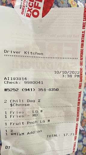 Read moreWent to Checkers on Lockwood Ridge Rd and University Ave. in Sarasota and ordered two hotdogs at promotional price of 2 for $6.00, upgraded each order at promotional price of $3.00 more per order which would include fries plus a drink. Upgraded one of the drinks to large. Total came to $17.71. Handed the attendant $20.71 and when I noticed he was going to give me coin change back I told him my change was $3.00 and he claimed I had given him .21 cents. I told him I gave him a $20 bill plus two quarters, four nickels and a penny which amounted to $20.71. Someone else came along and started to argue with me but then told him to give me the three dollars. I then proceeded to check my order and they only handed me one drink. I explained I had asked for the large fruit punch which they gave me and had also ordered a medium mango drink and that they were out of mango at the time I told him I had paid for a mango drink and showed him my receipt he stated that was an Add-on and I was not to get my second drink. I left the place without my second drink and very dissatisfied with the service and arguments I received. It is my first bad experience with Checkers but...