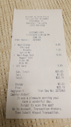 So first of all food was fine, as expected for a chik-fil-a. And honestly i would not be posting this for any other fast food place. But i am under the impression that chik-fil-a is known for their customer service. So i was surprised when my order came out and was missing french fries. I immediately went up and told the cashier that i was missing french fries. Now it would be at this point that you would expect the cashier to produce the aforementioned french fries, but no, she goes to the nearby manager and says so i can hear "he said he is missing french fries" manager comes over and asks me if he can help me. Now i must admit at this point i am a little snarky because this is taking way to long and i have kids alone back at the table that may be about to launch a nuclear rocket or a chicken nugget (whichever they can get their hands on first). So i reiterate to the manager about the missing french fries. I offer to him both my receipt and the order slip that was on my tray. It was at this point that he tells me that i got mac and cheese, while this was helpful information it was not irrelevant in the case of the missing french fries. I point out to him that the mac and cheese was a side order to one meal, but the missing french fries were a side order to the other. Here is where the snark came from me, i told the manager that i was surprised that they missed it because i thought they were known for their customer service (snark aside i do apologize for that, sure he deals with butheads like me all day) but i did feel like the folks here were thinking I was trying to scam some fries off them. The manager then began to study my receipt forensically to verify that french fries were in fact listed, i offered for him to come to my table to verify that fact that i did not David Copperfield the french fries. It was at this point that the saga of the missing french fries ends and he gave me an order of french fries. I will see if i can post a picture of my receipt so the internet will know that i was not trying to scam french fries, i mean if i were going to scam anything it would be somehow chicken adjacent given the specialty of this...