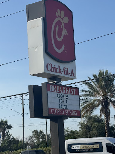 Read moreI have been to Chick-Fil-A for lunch, snacks, and dinner but not for breakfast. I was planning on grilled chicken nuggets but they are not on breakfast menu. So I opted for a cute egg white square with grilled chicken and no cheese on an English muffin. So Delicious dipped in Chick-Fil-a sauce and the great bar b que sauce, 2 of the 8 possible options They offer half lemonade half sweet tea called the Sunjoy®. I make my own version with unsweet tea and diet lemonade, passing on Coca Cola ® fountain drinks. Quick efficient and patient service today by TAYLEE with her great smile. Hand sanitizer dispensers at each entry really work! The main entry and exit doors are accessible and have push-in heavy door. The scccesibke Venue offers room to move around indoor booth and table seating and outdoor table seating at tables. All outdoor seating accessible but with no overhead cover and it sits in busy Ulmerton Road. Most indoor seating is accessible with some high top tables. Accessible Mens and women's restrooms have 2 grab bars, automatic flush and hand wash, 5ftx 5 ft spaces and offer a diaper changer Many kids high chairs available indoors and outdoors This venue offers an indoor kids playground with an immobile car to drive after climbing up a flight The drive thru is always busy and this morning us no exception No background music this morning Menus posted are white background and red and black letters, some glare, fairly readable. Free van accessible parking in private lot...
