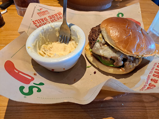 Read moreFirst, about the picture... That's an "Alex's Santa Fe" burger, and I got it with loaded potatoes. The potatoes would usually be more filled & have toppings, uh. I was hungry before I remembered, "Oh yeah, Google review." First time I've ever had Chili's; honestly, I thought it would be like a typical Italian type beat. But no, it's incredibly American. Pretty good atmosphere; I missed a pic, but they had these jar lights that were neat. The servers were nice and considerate and checked in often. I noticed another review mentioning a mess, but I didn't notice anything noteworthy; and I've done janitorial work, messes bug the hell out of me. Food. As you might gather, my breadth of experience is limited purely to this one meal. However, it all seemed good. The loaded potatoes? There were little bits of potato skin in it, which made me happy; so many places use instant potatoes - which isn't bad, mind - but genuine potato is of a higher quality in my opinion. The Santa Fe burger was pretty spicy: jalapeños, avocado slices, pepperjack cheese. That or I'm just too white. But it had a nice "chasing" aftertaste. The first bite is spicy, but the more you eat it, the more that spice lingers and grows. I'll also mention that as part of the ambiance, how well and easy the music blended into the background. Was it vaguely pop-ish? It's very easy to ignore, so I'm not entirely certain. I merely make note of it because I've eaten at places where the music is rather intrusive and counters the mood. I'm from the Midwest, so I'm used to places blasting country... And I don't entirely hate country, but I really don't need Toby Keith hootin' and hooin' about how he should've been a cowboy while I'm trying to relax with some food. Music for ambiance is good. It introduces energy and life to a place; it just becomes awful if it sticks out too much, which is the only reason I make a point to mention it. However, yes. In general, I am very pleased with...