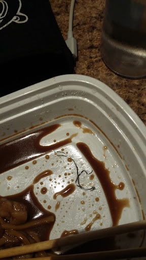 And the food was bad. The fried rice tasted like it was left overs from the fridge and it was not even heated right or seasoned well. The lo mein noodles were too thick,. the egg roll was gross, they have ground up slurry inside it, tasted like the bad frozen supermarket kind. They didn't even put soy sauce in the bag.