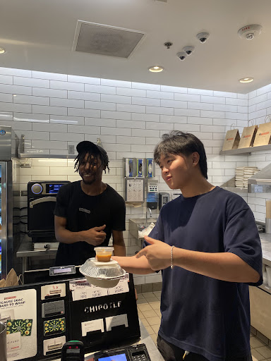 It was my first time at this new Chipotle. The first things I noticed: the place is empty and there's only employees present. Some are sitting and enjoying their breaks, a few in the back, and one girl doing orders.