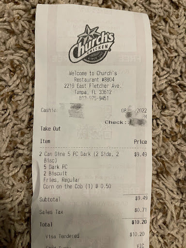 Read moreI drove thru the drive thru and ordered as usual. All seemed to be well until I decided to back into a parking space and take a bite of food. It appears that the drive thru associate moved away from the drive thru, came outside, placed her headphones (drive thru) around her neck and purchased a puppy (all while on the clock) !! I observed this employee rubbing and holding a black puppy with her “Churchs Chicken “ shirt on , soon after walking away with the pup cradled in her chest area . It baffles me how some people do not take food , customer service or customers serious at all. This is considered very unprofessional and sanitary. Also the other picture displays another employee (the cook ?) with her apron on looking inside the vehicle at the puppy that was placed inside the car as the employee ran in and out concerning the puppy . Please was your hands , your shirt and change your nasty apron !! These two were going in and out of the door and handling a freakin animal. Won’t be back...