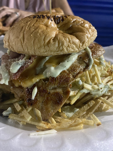 pedimos una hamburguesa mixta de pechuga de pollo y Lomito, el pan perfectamente pasado por baño de maria, la mezcla de salsas y papas perfectas dentro de la hamburguesa y la sason de las carnes al punto.