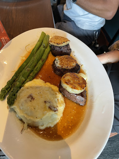 Last night my wife and I went out to eat after having to check to see if our house in St. Pete flooded for the second time in four months. (The first flood was the reason for our recent move to the area). Unfortunately, Jada gave us a terrible night which started with a mediocre attitude which was understandable given it was a busy night. However as the evening came on, she was so rude my wife and I truly felt we were on the “candid camera”. This incredibly rude server lied to us about the restaurant having remaining bread as tables around us continued to get extra loafs. At the begin of the meal she rushed us by saying that “the kitchen is behind because it is so busy” but then has all our food come out in 5 minutes? She then makes a mistake the with order regarding my wife’s potatoes and instead of leaving them there or taking the entire dish, she proceeds to yank a hot ramekin off my wife’s plate using the cocktail napkins from our drinks and splash filet meat oil everywhere. Even worse, to avoid a scene, but very frustrated despite my hot food coming out, I went to discuss the situation with Keisha the manager at the front about our server. She said she would get us “back on track”. Her version of “management” was to scold the worker Jada about her attitude and then send her back to the table to apologize and say how “we did not understand her”. It was not seconds later she is audibly talking gossip about our table with the other wait staff. Better yet, Jada comes over with a low class dessert, a check, and says “has a good night” with no offer to refresh our drinks or even order a dessert of our choosing. While Jada should never be representing an establishment like this, the biggest letdown was that as new SRQ residents we were so excited to join the club that we had to cancel last evening. While the food is delicious, my wife and I have never been made to feel so downright embarrassed in a dining establishment albeit taco bell all the way to the best restaurants in Rome or Maui. I don’t expect frills, but I expect human decency and respect which I worry I will never get back into this restaurants. This restaurant fails for both service and managements response to the situation. Sad because I do not know if we could ever walk back in after being made to feel so awkward, embarrassed, and...
