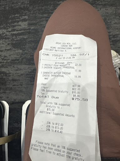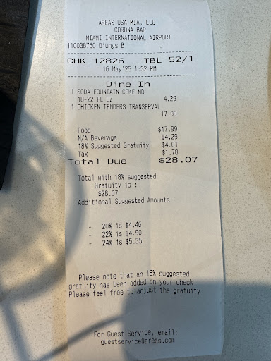 Read moreCHECK YOUR BILL I donât know how this place got such high reviews for the airport. Extremely overpriced, even for airport food. Paid $18 for some very âmidâ, as the youthz say, chicken strips. The draft beers were egregiously priced as well. The bartender was a little pushy. What really made this a 1 star experience though was that gratuity was added into the final bill. Iâm all for tipping for good service, but Iâm absolutely NOT about supporting restaurants that wonât pay their staff a living wage. If you go here be sure to check your bill and youâll see a 20% gratuity already added into the total. Theyâre likely counting on people not reading through the check because at the bottom, it says if youâd like this adjusted, please let your server know. And of course youâre taxed on that tip as well since itâs built into the bill....