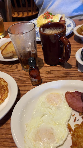 Ā Ā Ā Read moreFirst off we always stop at the Cracker Barrels to eat when we travel. We have stopped at this location twice now on our travels up North. Superb service, order cooked perfect for hubby and I. I have nothing negative to share. Our waitress whose name was Amy (spelling may be wrong) ā¦.was on it with service and compassion. My husband always orders Mommaās Pancake breakfast so I can eat one pancake of his and I order The Old Timers. My momma used to make the best pancakes in the world. When I was a little girl I would wake up sometimes in the middle of the night and she would make me pancakes from a cast iron skillet. You know the kind, moist and soft inside with crispy edges. The kind that are simply amazing. Well Cracker Barrel makes them almost exactly like she did. My momma died in 2017. I miss her every day of my life. While we were eating there i suddenly realized these pancakes were exactly like my moms, it could have been hers and I was suddenly back in time sharing a pancake with my mom. I started to cry. Crying and eating pancakes brought over my waitress. We shared a moment in time of comfort and compassion. Cracker Barrel is a great place to eat but itās the quality of staff that truly make a restaurant inviting and prosperous. The entire staff was wonderful but Iāll never forget Amy. Bless you Amy and your beautiful soul. You took the time to comfort a stranger who was just passing by. Iāll never forget you. We will make sure to stop by here on our travels again! I bought a large pink Christmas Light up Bulb while there in remembrance of your waitress Amy and my mom. Keep the light...