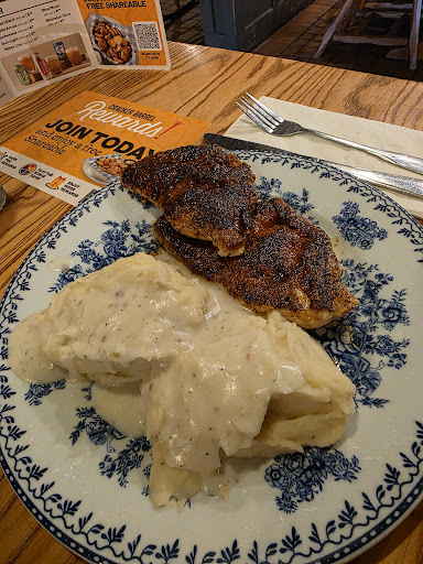 5 Stars only because I love CB..I go and get barreled atleast once a week since a child, love this place I go nomatter what city or state Iām in and I canāt name a single bad memory until yesterday. Went with my father and brother and the environment was fantastic at first smiles all around, then we met our waitress Jessica, immediately with an awful attitude, we ignored and ordered drinks. 10 minutes later we finally get our 2 WATERS (thereās 3 tables that she is helping at most), doesnāt say a word just dropped the cups and walked away with an eye roll, comes back finally another 5-10 mins later takes our order while having that same nasty attitude over her inability to take and read back an order. Dad orders the dinner portion meat loaf and they bring a lunch, no big deal we brought it up and she just simply said, āno itās just small like that you should see the actual lunch portionā whatš???? walks away and we see and hear her over at another nearby table telling 5 gentlemen were over here complaining about portion sizes making her life harder this and that, when she came over I mentioned that I sat and watched/listened to everything she just said at the table over and she goes āoh youāre fineā I go āwhat?ā and again āyouāre goodā and walks away, she comes out with another meatloaf to compensate for the minuscule amount given originally which was nice of her however she just dropped the plate infront of my father and again rolled her eyes and simply walked away. We get our check and we didnāt hear another word from her, paid the bill the manager at the register got a small glimpse of this story and took the appetizer off the bill, very sweet people at the registers and host stand, however if you deal with a heavier-set lady named Jessica beware youāre...