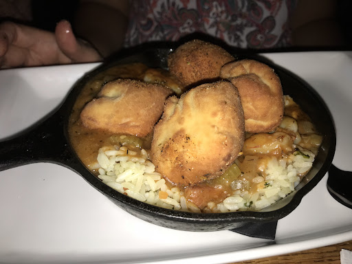Read moreFirst off, good luck trying to find parking nearby. We ended up parking by the publix around the corner and walked. (It really wasn't too far) The restaurant was busy and we didn't have a reservation so we decided to wait 35 minutes. It was a nice afternoon to walk around so the wait wasn't horrible. Let's get to the good part. The food! We started off with the Short rib sweet potato tots and Parmesan truffle fries. They were both delicious! The sticky, short-ribs were the perfect compliment to the still crispy sweet potato tots. I'm pretty sure I tried licking the skillet that it came on after we finished. The truffle fries were good too. Especially with the balsamic ketchup. For my entree, I got the Belgium clucker, their version of chicken and waffles. The chicken was amazing and the waffles were very crispy. Honestly, what made it extraordinary were the bacon collard greens on top. It really just went well with the chicken and the waffles! I'm not sure if I ever want to eat chicken and waffles now without collard greens. Yes, they were that good! My wife got the gumbo which was fantastic as well. I really believe the beignets made a big difference. We ended our meal with the bourbon banana bread pudding and their red velvet cheesecake. The bread pudding is good but the red velvet cheesecake is exceptional. It's a layer of cheesecake in between two layers of red velvet cake. Brilliant. All in all, it was a great meal and wallet friendly. Each of our entrees were less than $14. Great deal for dinner! I'm willing to say, it's worth leaving the comforts of the city to get out to Trinity to try this place....
