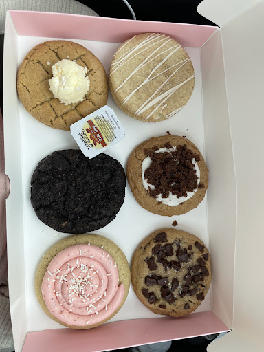 Read moreWas in a bind and needed a gift so stopped in for the first time...and last. Aside from being very expensive, I walked in and got NO help or acknowledgement...after standing at the kiosk for 10 minutes trying to decide on what to order (which was 12 cookies and 9 boxes) I was given my order but no bag. I'm 100% for going green but how do you expect to carry 9 single boxes of cookies and get in your car? I was also disappointed because a couple cookies said "chilled" so I didn't know if I could mix and match them.. because I was never acknowledged by the employees standing chatting in back by the warmers. The only reason 2 stars were given is because the cookies were good...not almost $4...