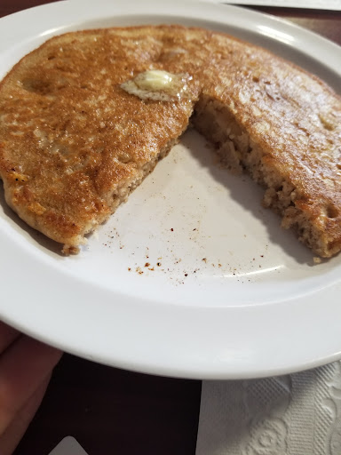 When we got there the place was empty - we were their first patrons, at the very least, at that particular time in the morning. After being warmly greeted we were told we could sit anywhere, so we did. The menu is straightforward, unassuming, and uncluttered. Breakfast items we all know and love and some other surprises I've never heard of. No matter, my wife had their two-egg build-your-own style, while I had their Tornado Burrito - we each added a pancake for good measure (and with blueberries).