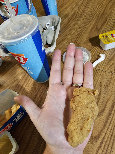 Read moreThe first problem was the entrance with the huge hump that could take out a car. Service was awful. Not the cashier's fault because she was the only one taking orders and in the process of dealing with a family with badly behaved children. She also had to leave the counter to go fix the soda machine. There were other people in the back who could have helped her out. The counter with the soda and condiments was a bit dirty and all the ketchup packets were sticky. We sat down at a sticky table and waited for a while for our food to come out. Everything seemed okay until shortly after we left and started to feel sick in the car. We both went into a sweat with stomach cramps and barely made it home to run to the bathroom with diarrhea! Thankfully, I have two bathrooms because we needed them! The only thing in common that my friend and I had for lunch was the french fries. They were most likely cooked in rancid oil. My friends chicken tenders were so rubbery that she couldn't chew them. The entire experience was a complete disgrace. Again, not the cashier's fault but the guys in the back could have given her a hand and also clean the dining area. I'm assuming that the explosive diarrhea we both experienced was food poisoning! Where...