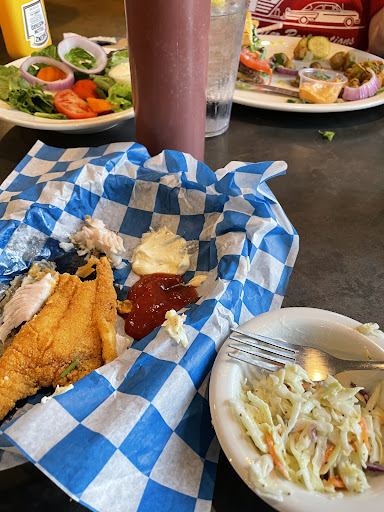 Ā Ā Ā Read moreTime,4:30ish Saturday 3/29/2025 After a totally busy day of errands, the hungries hit! Sis suggested a local favorite of hers⦠a place iād passed on numerous occasions. First thing i noticed as we pulled in was the abundance of live oak trees throughout the gravel parking lot..here in the south, a shady parking area is premium⦠even more-so in the summer! Upon entering ,only 6 tables by the windows were taken.. we got the last.. Waitress immediately seated us, returned with drinks and menus.. beer and wine,iced tea and sodas were the choices.. A very good selection of oysters, shrimp, fish All served in various ways. For the non-seafood eaters choices of burgers, chicken tenders or just vegetables were also on the menu.. A childrenās menu was available of which I partook.. fried catfish with a side of coleslaw ., both of which were perfection in freshness! The serving was enough to slay the hungries⦠Sis chose the hamburger on non- hamburger bun ..basically an open faced generous sized hamburger!! Fried okra on the side.. again perfection! Plus a side salad which was way too much.. so it went home in a box.. for tomorrow.. Prices were a bit high for me.. but the place was filled to capacity within minutes after our arrival.. wait time for our selections was minimal.. servers were friendly and helpful. Hours are 11am til..kitchen closes at 9:45 pm Stop in and check it out.,, very laid back non-touristy...