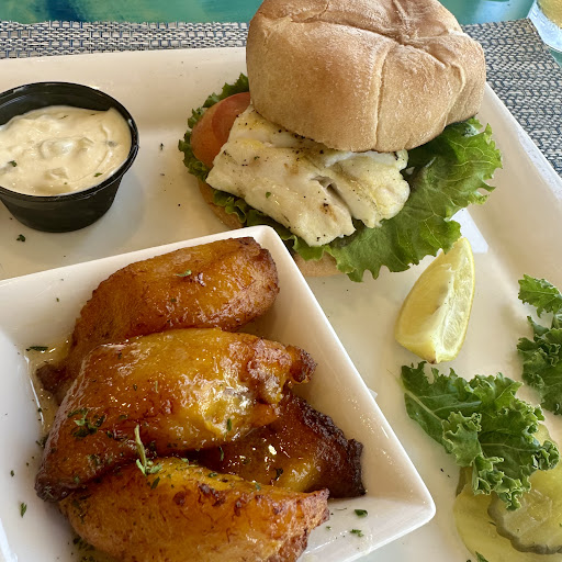 The captivating scenes of boats heading to the restaurant, marina, or passing through the bridge added an extra layer of charm to our delightful experience. Both of us settled on the Black Grouper Sandwich with plantains, each adding our unique twist - he favoring fried, and I opting for grilled. The sandwiches were nothing short of amazing; we devoured every delectable bite. While my only gripe lies in a soaked bottom bun, likely marinated in pickle juice, the sheer deliciousness overshadowed any discontent. Even with a wet bottom bun, every morsel was worth savoring.