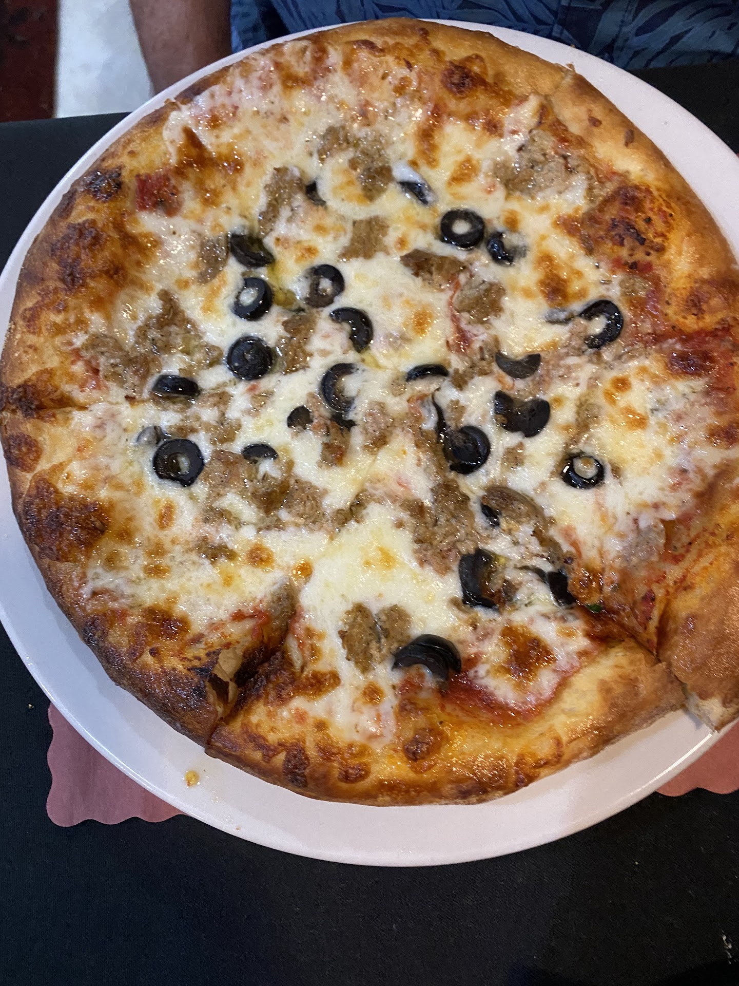 He had a sausage and olive pizza and it was crazy good with an obviously made in-house sauce. Again, even the crust you had to eat it all because it was so good.
