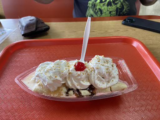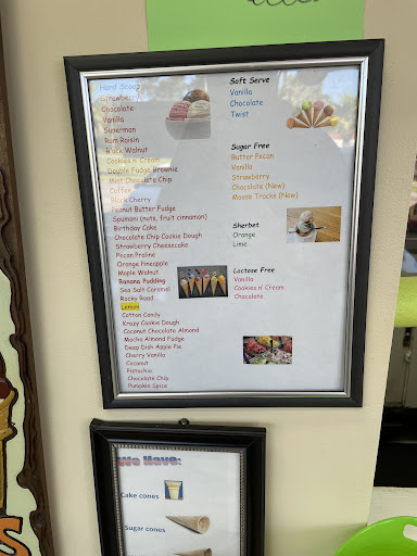 Read moreNow this is an ice cream store. We went to Dairy Queen for a hot fudge Sunday . Paid $ 5.99 for one and also bought another one, only to be giving a small amount of soft serve ice cream with hot fudge and that was it . Half the size I was expecting and no napkins. Half way through when your hands are all sticky we had to get up wait our turn to ask for some napkins . We did get two but my Sunday was all melted . No oh yes sorry , nothing . But Dice's was not even that way . When we was getting our Sundays order we ask about any nuts that was not peanut or roasted , no was there answer but could make it out of this ice cream that had Carmel and pecans she added some hot fudge , whip cream , and a cherry on top .now that was one very good Sunday and they even gave us napkins with out needing to ask for them . The store was very interesting with small old stuff all round the place they even have a small to medium statue of George Burns , for sale for around $ 40 I think.they made our trip there enjoyable and very memorable may they have lots of customers and hope you enjoy it like we did . Oh and they have all kinds of hamburger and hot dogs and other food besides ice...