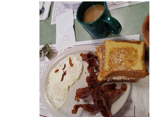 A quick 10 minute drive over the Tom Stuart Causeway brought me to this diner on Alt.19. A stand alone business serving breakfast and lunch with entrances on 2 sides and parking on 3 sides was a welcome sight. With half a dozen patrons by the time I arrived at 6:15am, I settled into a comfy booth. I was greeted right away by a cherrful lady and offered the beverage of my choice. Unsweet tea please. One great thing about diners other than the hours, you can order whatever is on the menu at anytime.
