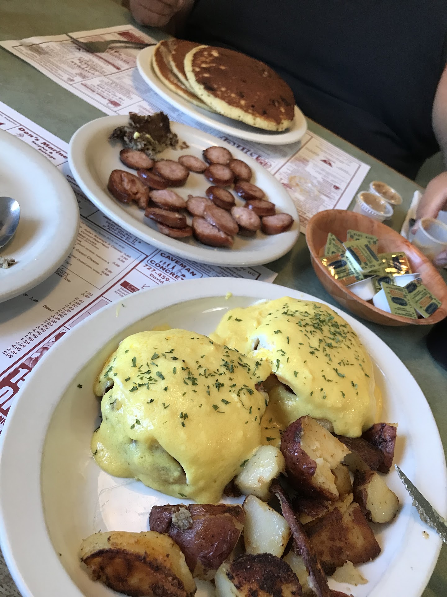 Read moreYesterday I had the worse food I had at Doe Does. I do not know what changed but the last 2 times I was there, the food was sub par at best. Yesterday, I had the half order of Eggs benedict. The English Muffin was raw. Not slightly cooked. It was raw. When I told my waitress about it, she offered not to charge me for my sausage gravy. Our food came in less than 5 minutes after ordering. Most if the food is premade and when it gets to the table, it shows. I came to the office this morning and talked to my partner about it. His words,.,,,I'll never go there again. Why I asked. Basically, the same story above. The food is going waaaay down hill. Listen, I love Doe Does' but whom ever is watching the food going out needs to pay more attention. Yes, you'll always be busy but I guarantee you are slowly but surely losing your old business. People who have gone there...