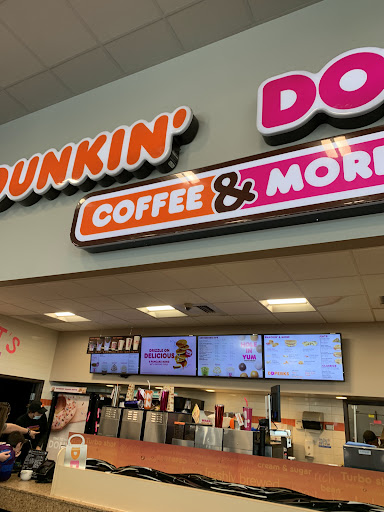 Read moreThis Dunkin is inside the gas station. It wasn't that busy when arrived, but the staff was clearly unhappy or had a rush. The girl taking our order was basically hiding under her visor and we couldn't hear anything she said and kept having to ask her to repeat things. The drinks were fine- we were hoping for better coffee than the hotel coffee we had been drinking. We opted to get some donuts as well. They were fine. The counter they put our box of donuts on and drinks was sticky and gross. The box stuck to the counter and I had to wipe it off and almost asked for a new box but realized that might be too much. We also had to wipe off the bottom of our cups. Not a great time. Felt like we should have just gotten the gas...