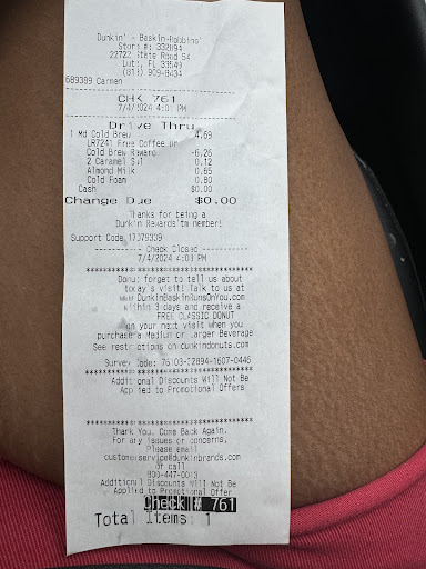 I am a loyal Dunkin customer for over 20years. Today I visited a Dunkin I used to frequent regularly back in 1999-2001 when in Highschool at Land O Lakes High School. I currently have family still in the area I visit sporadically during holidays. Today I was unable to visit my local Dunkin due to being unprepared and having to charge my vehicle in Land O Lakes because my home charger malfunction. I just rearranged my plans and decided to charge my car in land o lakes and then go to the Dunkin down the street from my parents home ( home I grew up in) I ordered my regular drink medium Carmel Cold brew sun cream for almond milk with cold foam ( if you look up my Dunkin membership it’s on there multiple time sometimes 2 times a day ) and today the price was incorrect. The lady charged me 12cent for my Carmel swirls ( see attachment). I have ordered a Carmel cold brew with cold foam almost 100 times ; I have been told by staff a medium come with 3 Carmel swirl pumps and I always ask for ONLY 2 pumps and NO sugar. Today I was told the Carmel cold brew doesn’t come with Carmel swirls and I would have to be charged .6 cent for each pump. The money is not the situation here the lack of customer service is the woman taking my Order refused to listen to me explaining that she was over charging me and just continue to be extremely dismissive. When I asked for contact information for a member ( at that point all the staff was at the window) they adamantly told me Over and over there is no contact information they can give me I could only call the number on the receipt. As a black middle-age woman attempting to explain myself to these women and adamantly being dismissed it was embarrassing. I sharing this experience with you so hopefully there can be more opportunities for training and growth for these staff members. The employee also mentioned she was training a new staff and it was her 1st day which is concerning because the behavior and customer service that was model during my service...