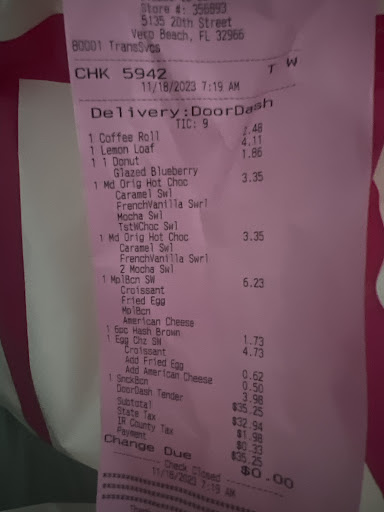 Read moreToday 9/16/22 I came through the drive thru at 20th st next to tropical smoothie and picked up a mobile order plus ordered something else. The lady was not to nice at the window when I kindly asked her to confirm what was in the mobile order. She finally confirmed the order and I went to work. Got to work and there was only one of the donuts and no donut for the mobile order. I called and apparently got the same lady. I let her know that I was missing a donut and she responded back with a nasty tone saying I gave you the donut... well ma'am that was one of the two donuts not both. Then her response was "well then you can come pick it back up." Im at work I cant just leave I asked if there was another way to get it. She continued to be nasty for no reason so I asked for the manager. She said she was the manager. Im sorry ma'am but that is absolutely no way to speak to a customer when the mistake was on your end. I understand people have bad days but there was no reason for...
