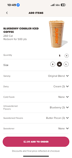 Ā Ā Ā Read moreLet me preface this by saying that I love Dunkinā Donuts for their product in for their overall efficiency at delivering their product. However the store is pitiful. Firstly this morning, one of many mornings on the weekends that I go to this Dunkinā Donuts on my way to work I ordered to chipotle brown sugar bacon croissants a large iced coffee French vanilla and toasted almond flavored with creamer and liquid sugar and an extra shot. Along with two chocolate caramel donuts. Yes I like to eat. And yes I am specific about my coffee. I repeated the liquid sugar part and was told āI heard that part the first timeā and the whole reason I had mentioned it was the day prior when I ordered my coffee I didnāt receive liquid sugar. So I pull around the side Iām waiting, and then my turn finally comes up I will look to a window that is closed without my total listed I proceed to wait for 4 Minutes, closer to five, to even see a person come to this window. When the person did come to the window I handed them my card they didnāt say a word to me except my total and then they rang my card and asked me if I would like my receipt at this point Iām being brusque. So I take my food and I take my coffee and I set it down and I am so pissed at this point that I look up and I say thank you have a great day With no response.when I open up my paper bag and the $14 I have spent on my breakfast my breakfast isnāt even warm that sheās hasnāt even melted and then when I take a look at my coffee just to make sure they got it right they didnāt even mark the damn cup. Oh on top of which I never got my donuts. Iāll be at I didnāt get a receipt so I wasnāt charged I wasnāt charged and I told him I didnāt want to receipt. If I was charged I wouldnāt know anyway and thatās my own fault. However itās the principle.
