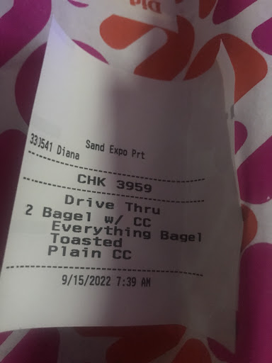 Read moreeverytime i go to this dunkin’ with THE exact coffee order. it gets made wrong every single time, and ive went through so many times at this point it’s sad. went through yesterday and the dumpster was overfilled and wide open. i had my fiancé go through this morning for the same coffee and a bagel. made my coffee wrong again, but what did we expect honestly. he ordered two drinks only got one so they made him the other one for free 👍 good job lol. had two bagels with EXTRA cream cheese even says it on the bag and i got the smallest amount of cream cheese (in my opinion) but if someone asks for extra cream cheese don’t you think they would expect more??? not a dry a** bagel with barely any cream cheese. this is just ridiculous, this team needs to discuss amongst themselves what needs to be improved because this store is just slow and lacks common sense. they get your order wrong every time and makes you wait a ridiculous amount of time....