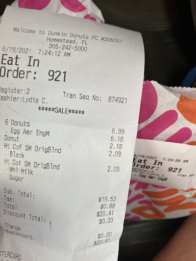 Read moreYulisia charged me $13.46 for my two dollar coffee because she charged me for the car ahead of me on 1/25/24 and I’m still waiting for my money back and it’s March. Can’t dispute it on my credit card because it was a gift card called Dunkin corporate multiple times and they said that they have to give me a case number and wait for the management of this Dunkin to call me back…it has yet to happen. I’ve already gone back twice since the incident and no one can give me my $13 back. Called this Dunkin asked for the manager myself..nothing..It is ridiculous at this point I deserve like a $50 gift card because I can say I went from being 100% Dunkin to only wanting Starbucks now. They would refund you right away. I don’t want to drink my freaking Dunkin k pods that I use for my Keurig. I have a cute little Dunkin bracelet screw that trash. I’ve never had a company just say screw you over for charging $13.46 and then not wanting to give me my money back... ya I’m Mad. The manager is horrible here....