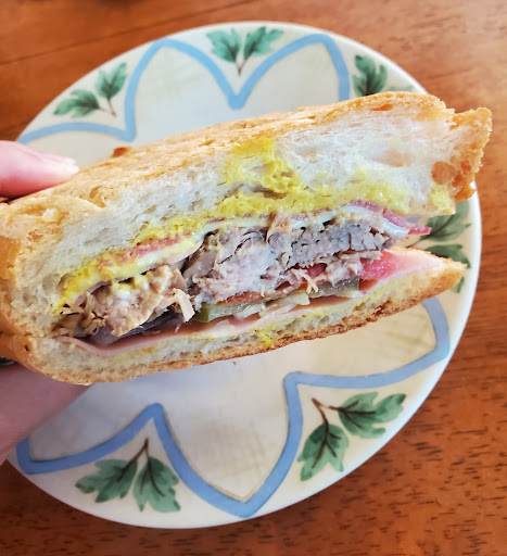 I tried the Cuban Sandwich with no tomato extra pickle. The pork on the Cuban was moist, plentiful and delicious. There was only one very thin layer of ham, most people would probably prefer more ham. I don't know what kind of cheese was on it but it wasn't swiss and for me I really massively would prefer swiss cheese and next time will probably ask for no cheese because whatever cheese was on it I found tasteless a d not a good texture. Overall very delicious Sandwich and would highly recommend.