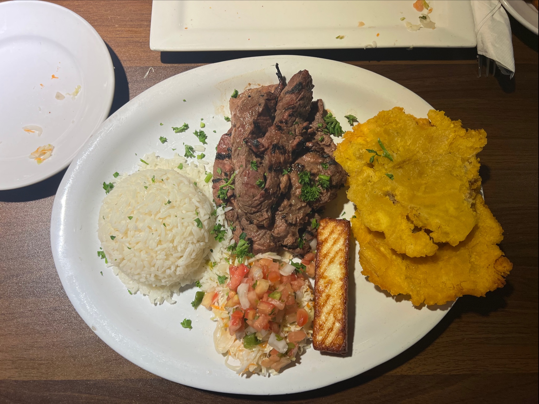 Read moreThis place is BIG and well set different decor good ambiance great service this time I only tasted La Picada and the Tostones con queso frito.....the wings in la Picasa were HOT the carne asada didn't feel like carne asada more like bistec....liked the tostones, yuca frita and pig. The salad with the boiled yuca was nice and crunchy and the yuca was soft can't go wrong with maduros as is cut or unbag and fry. But the frijoles (beans) were not the Nicaraguan flavor I am accostumed.....tasted more like canned frijoles. Now the music Looooved the set up of the TV but the music is a tad too loud for the place when you have the bass crackling at the end its tome to lower the volume music is to be enjoyed not to hurt your ears. Besides in a restaurant having dinner with family talking is always a thing.....Now to finish I am wondering how and who will clean the forest in the walls and ceilings....over all will be back to taste the rest of the food and give you...