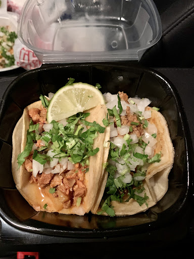 Read moreIf this looks like a messy blob of taco, well that’s because it is. I’ve been following the folks here on their ig and was excited to finally be in the area to try their tacos. I pulled up to a bustling parking lot, with a crowd huddled around the two trucks piling out Mexican food at rapid pace. I went for a chorizo, al pastor and pair of the birria photo’d here. Upon first glance it appeared I was in for a treat, but unfortunately it went downhill from here. Now I’m not sure if it was an off night due to the heavy crowd and expedition of the food, but these were imposed to eat. I mean that almost literally. Even with two shells (which I really dislike on a taco, completely takes away from the taste of the meat/filling), they completely fell apart rendering me to use my hands to eat them in greasy mess. This applied to all of them, which was quite the disappointment. The birria shells should have a nice crisp which complements the tenderness of the beef and gooey goodness of the cheese. The chorizo was half grease half mushy meat. I feel like they have more to offer, but I can’t say I’ll return...
