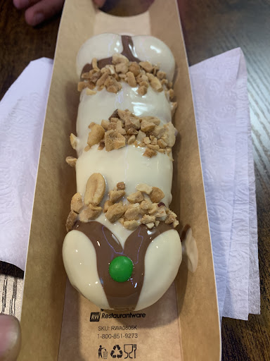 in my first bite I was able to feel the fluffiness of the waffle and the creamy from the chocolate and dulce de leche and with all of that the crispiness of the coconut or peanut, it was an invitation to keep eating it. (Totally forgot to take a of the inside after the bite)