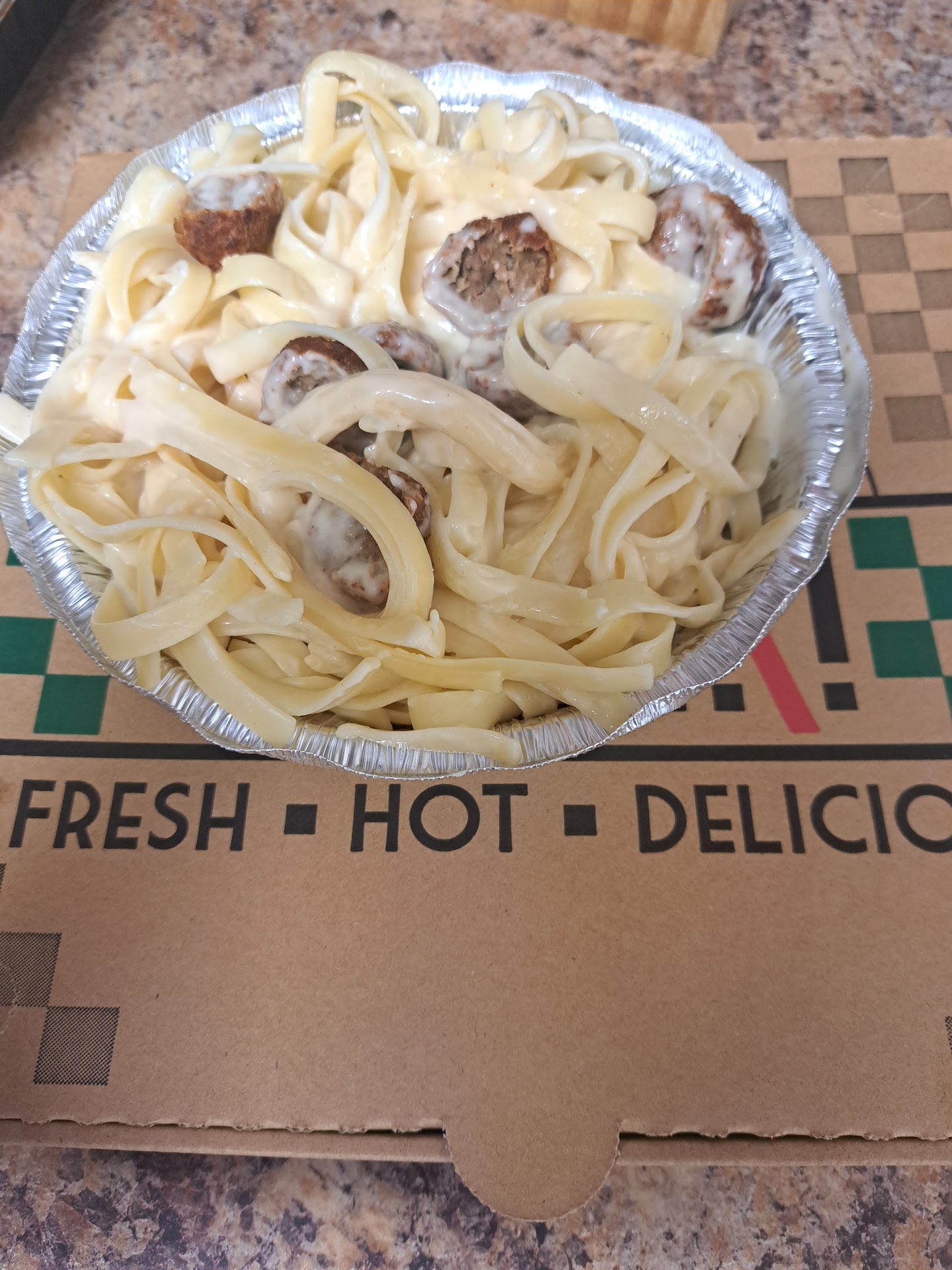 This place is a SCAM avoid at all costs. I ordered a bunch of Pizzas and Pastas to share with my family and this is what I got in return. They literally served me pasta with premade bottled Alfredo Ragu Sauce (You can tell they do not use fresh ingredients) and HALF of frozen meatballs. I wish I could be making this up; they literally served me half frozen meatballs which they cut in half to make it appear they were serving you more of these miniscule processed frozen meatballs. You are a disgrace for even serving this and charging $17 for this garbage. Your pizzas are mediocre as well and super greasy with a bunch of canned and not fresh ingredients.