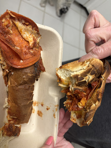 The point of me making this review is for my friend. The moment we walked in, the cook/cashier was super irritated-sounding already, but while my friend was ordering he asked the man to repeat something (politely, mind you) and the man immediately got an attitude. He wasnât friendly to any of us, but got particularly pissy with him specifically. My friendâs a super picky eater, so he wanted just pepperoni and mozzarella. Didnât even ask for a cheaper price or anything, payed the full price for less ingredients without any complaints. But when he got his food it was burnt on top, and cold in the middle. Cheese wasnât melted, and the man put sauce on it anyway. An absolute mess. If it were me, I wouldâve thrown away the whole sandwich in front of him, but my friend is too nice. Will most definitely not be returning to this location. But the other guy working was polite, it was just the one man we had a problem with. Older guy. The sandwich ended up getting picked apart as leftovers, which is whatâs on the provided photo, but you can still see the burnt part and...