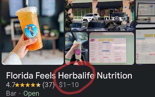 Edit: After a little research, this place, Florida Feels, is nothing more than an extention of Hebalife. Herbalife is a scam multi-level-marketing/pyramid scheme company that is already in trouble with the FTC. Cult members like this will defend these practices to no end.