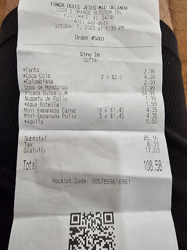 Read moreBeautiful and festive atmosphere! They really put a lot of work into it and that must be greatly appreciated. Service was good we went on a weekday afternoon and there was only two tables. The food was not the best Colombian food I had to be honest. The beans had way too much cumin and the rice was very hard, the Maduro was raw inside but the chicharrón was delicious and fresh. The Sancocho tasted old since the plantains were very dark and the corn was already soggy so those are indicators. I want to make this as a constructive feedback because the place is beautiful and I think you guys have a lot of room for improvement. The margarita I ordered which was the house mango margarita was $16 which I found extremely overpriced for the quality! Instead of using real mango pulp all I could taste was the cheap mango mix and not enough alcohol for that price and quality nobody will get a second round! Also no garnish was put on my margarita so I didn’t feel like taking a picture of it. Last but no least I found very sketchy that there is NO PRICE on the menu for desserts, drinks, nor sides! So I was shocked at the end with the drink price! The 20% gratuity was already included on the bill for two people which I have no problem with since I even gave her extra; I just find very sketchy that the never tell you the gratuity is already included and at the end the receipt you are supposed to sign ask for tips again. Customers are right to think it’s a scam! Hope you guys take the feedbacks because this place deserves to be supported just for the amount of work and passion you put on it. I’ll give it another try hoping you guys fix this issue that I read in so many...