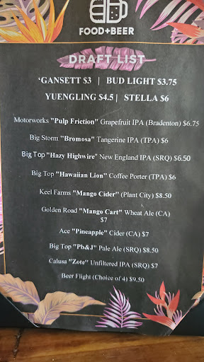 I really wanted to like Sarasota + Beer. I stopped in a couple days after they opened for a night cap and had a chance to speak with one of the owners of the sports bar and restaurant in the Fruitville Road area. He had very high hopes for the restaurant/bar and was accommodating when it came to putting on the TV to try and catch a hockey game. We talked a little bit about how eclectic & cheeky the menu was and how well received it was at the other location at Gulf Gate in Sarasota. I told him that we would come back during a football game and try the food.