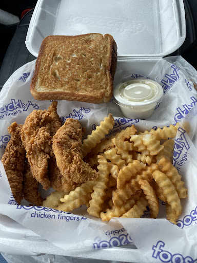 Read moreA chicken tender focused restaurant. Brand new to the area. Exterior is a bit to modern and cold. The interior isn't much better as it does not look very inviting. Not having ever been here before I did not know what I chose for lunch. It is extremely loud inside due to design and no noise buffers. They serve toast, chicken tender dishes, fries and coleslaw...that's it. The tenders and food are average school cafeteria quality food. The menu is super limited but it is cheap. Families that feed their small kids fried varieties of chicken every meal can get out without over spening. The ranch dressing is very good here. However, what chicken restaurant does not serve blue cheese? This one. They also serve Coke products but not Coke Zero. The tea is good. I would love to try the fresh lemonade but I personally will not choose this restaurant again. Not because it's bad but because its just not for me. During peak times please consider drying he seats and tables off that you wipe with the same rag. Three customers at once wiping seats before they can sit down does not leave a good impression and does not make the...