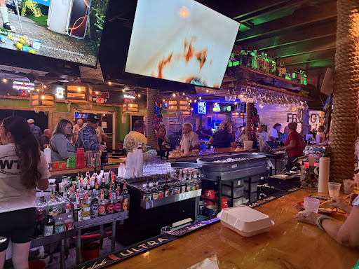 My wife and I stopped here all three nights that we were camping at a nearby KOA about 2 miles north of the restaurant between March 24-26, 2005. It looks somewhat unappealing on the outside, but on the inside it is very nice and clean, with great lighting, and it looks like it was recently remodeled. It's more of a late night place to go because they have either live music or karaoke every night of the week. We noted that most of the crowd was comprised of locals who live in the St. James city area or on the south end of Pine Island. They have a long bar in the rear of the restaurant with lots of seats on both sides of it, and also a lot of dining tables inside as well as a few on the porch out front. There is a band area on the north side of the restaurant (inside). They have a good menu, but we only had a late night appetizer there. The front side parking lot gets full very quickly, but they have additional parking out back. All three nights we went there (Monday, Tuesday, and Wednesday) it was packed with people and everyone was having a great time listing to the live music and/or some very good local karaoke singers. We found it to be a very enjoyable place and the only one in St. James City to stay open...