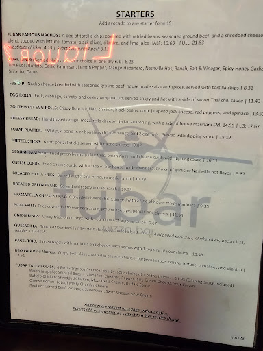 To start, we walked in and heard a staff member audibly groan when he saw us. I would think a business would be eager to serve customers, but maybe he was having a rough night. They appeared to be closing (mind you, this was three hours prior to close) Ordered draft beer, told the draft system was not working- understandable- things happen. ordered a sweet tea, was told the tea was dumped out. Interesting, it was 3 hours prior to close. ordered a coke, got the coke and was asked “are you going to have another coke? I need to dump the cooler out if not” - it was still 2.5 hours before close mind you. got our pizza- which was not necessarily cold, but clearly was not hot. To which we were not given any plates to eat off of, so we continued to eat off the pan it was prepared in. Got the check, certainly was surprised. On top of the increase from our last visit we noticed the 20% automatic gratuity. I understand the purpose, and it is clearly marked- no debate there. But a minimum tip requires a minimum level of service, we were not even greeted with that unfortunately. FUBAR is right, worst experience in a long time for a relatively...