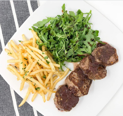 The fillet medallions were cooked to temperature but lacked salt and cracked pepper. The demi-glaze needed refactoring. The demi-glaze should have been made with butter, shallots, garlic,tyme and / or rosemarry, then red wine reduction, and a ladle or two of beef stock. Instead, the sauce was made with white onions and very little technique. The sauce was broken when it got to the table. Adding some creme freche or heavy whipping cream and letting simmer till consolidated, then removing from heat and adding cold butter would have set this sauce above the rest. However, that is not what happened. So the steak was wasted because while it was cooked to a nice medium-rare, I asked for rare. But the steak lacked flavor, and the sauce had an overbearing wine flavor. The proper reduction time pulls the alcohol out of the wine and retains all the flavor.